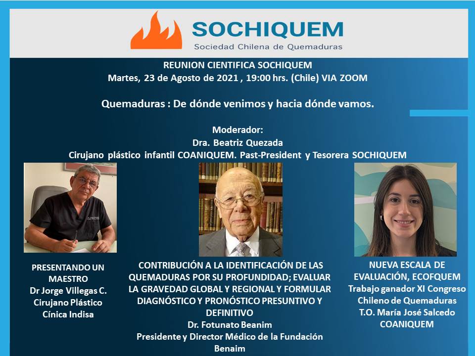 Los invitamos a acompañarnos en nuestra Reunión Científica que se llevará a cabo el día martes 23 de agosto a las 19 horas (hora Santiago).